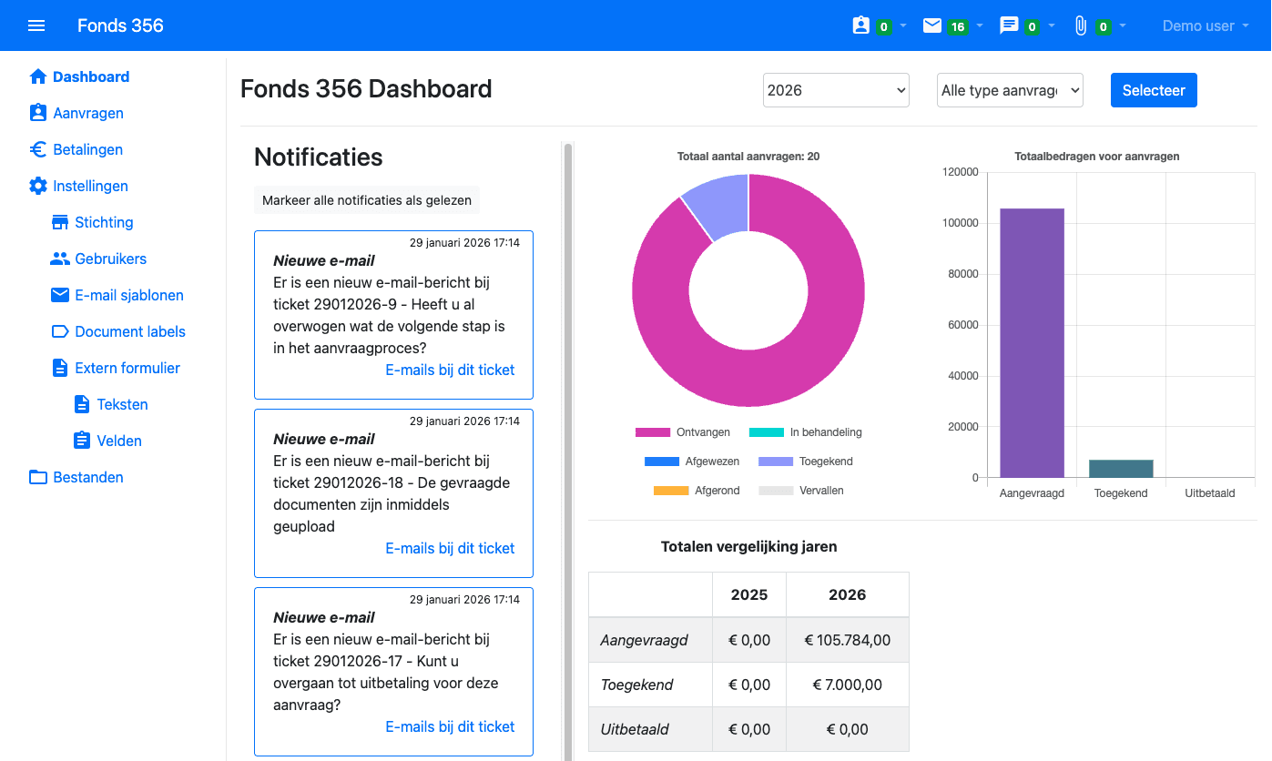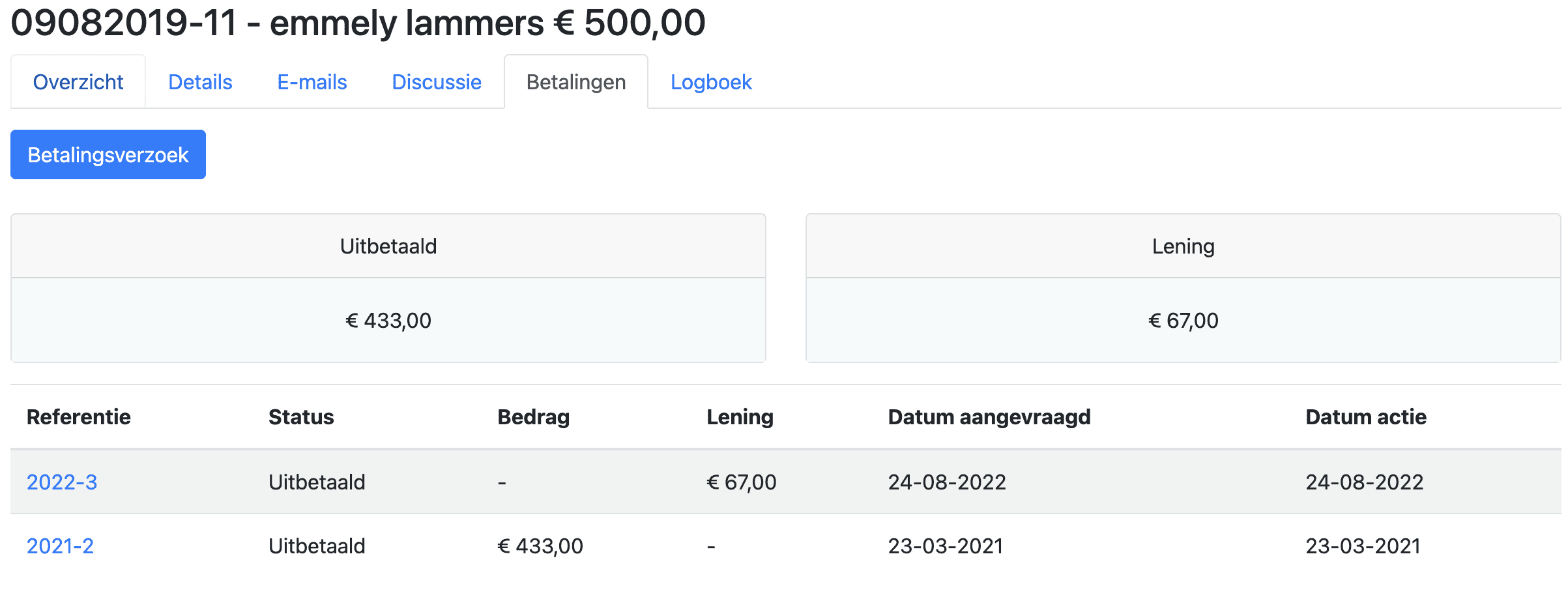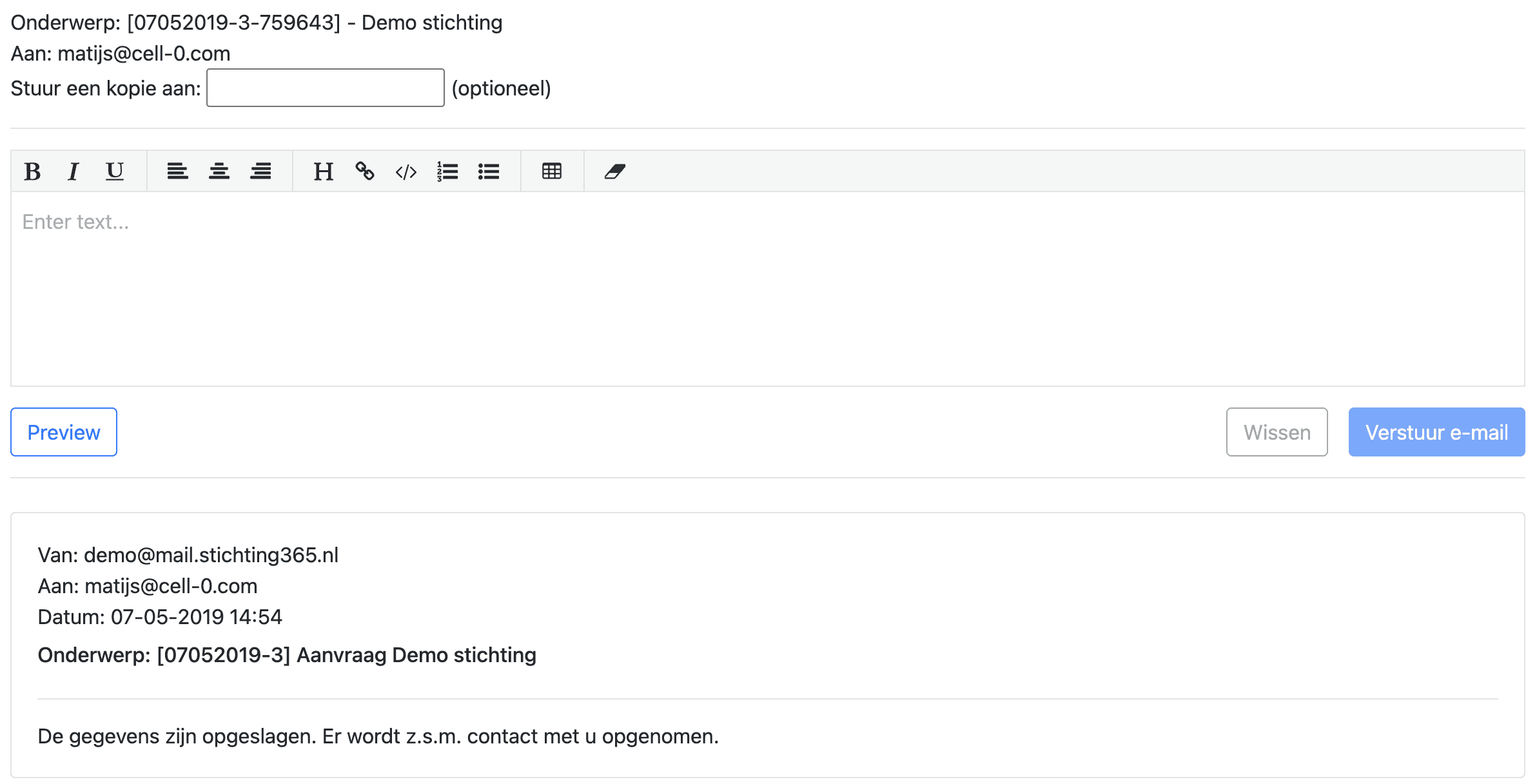 Mails worden vanuit het systeem gestuurd en antwoorden worden automatisch toegevoegd waardoor alle communicatie overzichtelijk op één plek te vinden is.